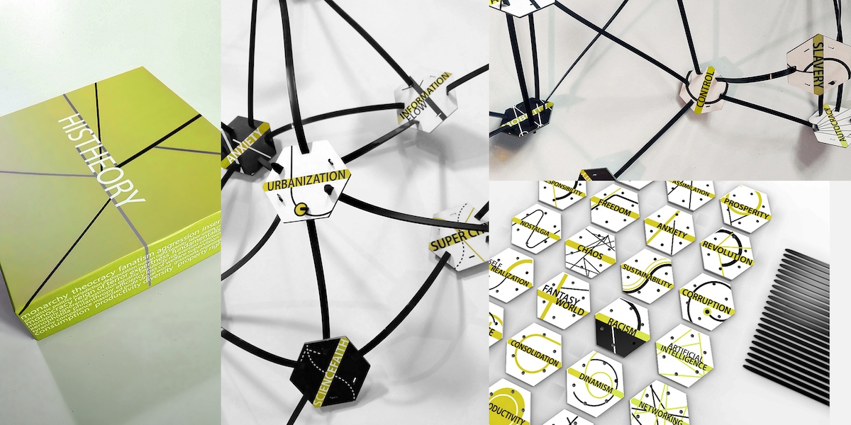 Bokor Gyöngyi fejlesztéséhez köthető az a társasjáték, ami szabadjára engedi a képzeletünket, de közben meglepő szabályszerűségekre tudunk ráeszmélni, s mindezt az építészet és design eszközével. Fiktív, vagy akár valós történelmi eseményből kiindulva csak a fantáziánk szabhat határt, hogy milyen folyamatokat, viselkedésformákat, eseményeket kapcsolhatunk hozzá - a lehetséges forgatókönyvek száma csak rajtunk múlik -. A kapcsolódási pontok egy összetett hálót fognak képezni és a játékban szereplők érdekes felismerésekre tehetnek szert. Ez a játék nem akar semmiféle filozófiát vagy elméletet erőltetni, csupán az a célja, hogy gondolkodjunk. Ismerjük fel a dolgok közötti összefüggéseket, a dolgok mélyén rejlő lehetséges veszélyeket, okokat, és az esetleges jövőbeli történéseket. A fogalmak száma tetszőlegesen bővíthető, de sokat előre definiáltak, hogy abból már izgalmas játékot lehessen összehozni. A lényeg valójában úgyis csak az, hogy együtt gondolkodva, beszélgetve, akár vitázva vegyük észre a történetek mögötti folyamatokat, hálózatokat, és lássuk át, ismerjük fel a történelem - mind a múlt, mind a jövő - mozgatórugóit.
