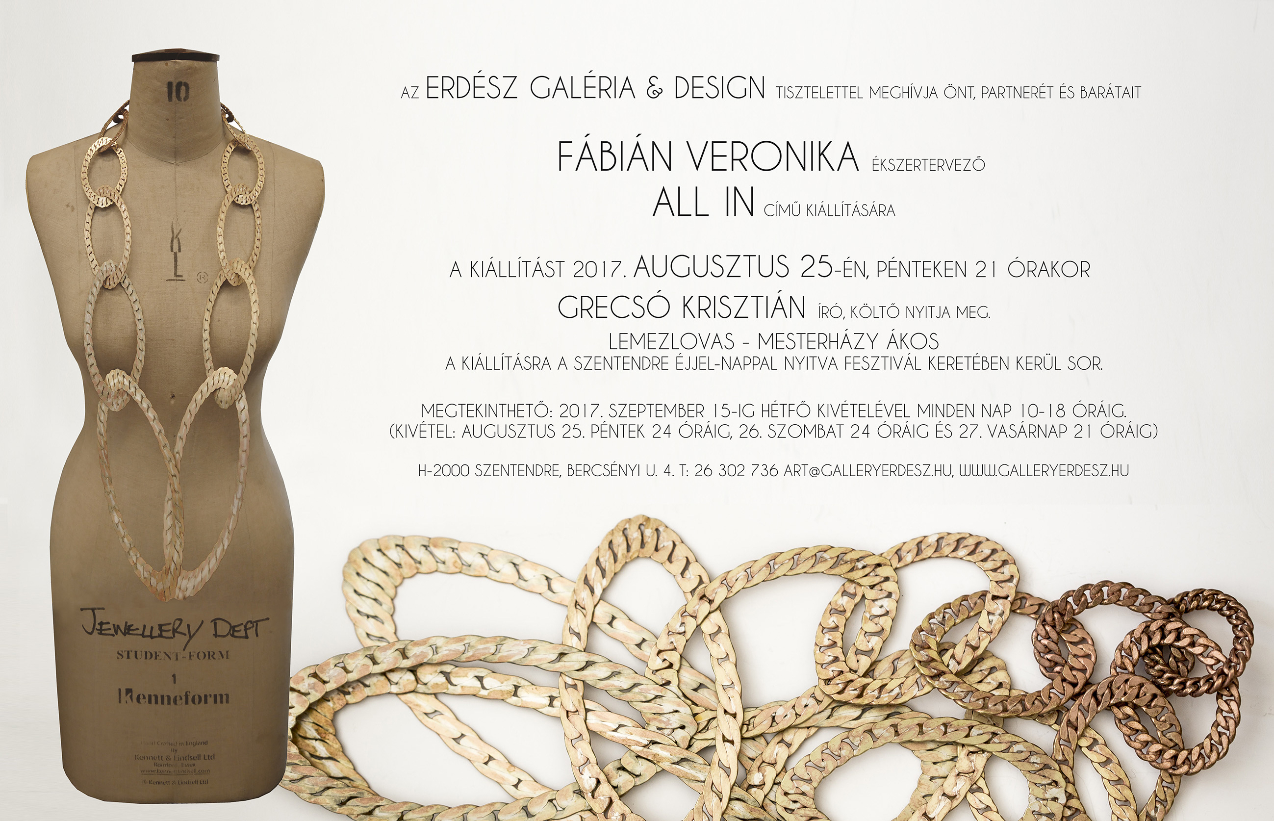 A kiállítás 2017. augusztus 25-én pénteken 21 órakor nyílik Szentendre éjjel nappal nyitva program keretében.